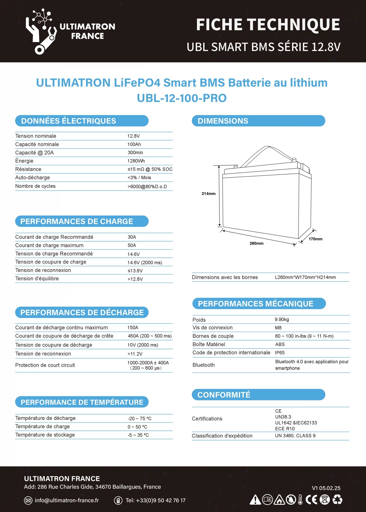 Ultimatron-Lithium-Fiche Technique-UBL-12-100-PRO-FR